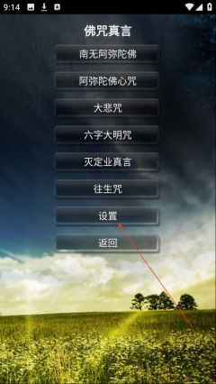 2、在佛咒真言页面点击【设置】按钮,进入佛经设置页面。