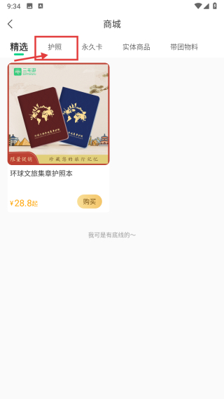 2、在商城页面,点击护照分类选项,进入护照商品列表页面。