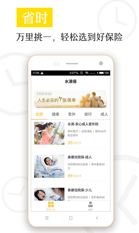 水滴公司于2016年4月正式成立,其投资方包括腾讯、美团点评、IDG资本、高榕资本、真格基金、点亮基金等多家知名机构。作为水滴公司旗下专注于保险特卖的平台,水滴保与中国平安、中国泰康等众多知名保险公司建立了深度合作关系。此外,我们还组建了专业的精算师与咨询顾问团队,致力于为用户推荐更契合需求、更具性价比的保险产品。