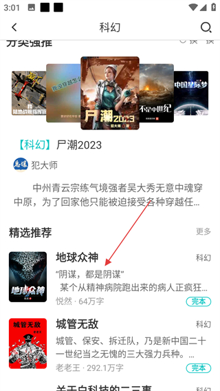2、在小说分类页面,选择感兴趣的分类如科幻分类并点击。