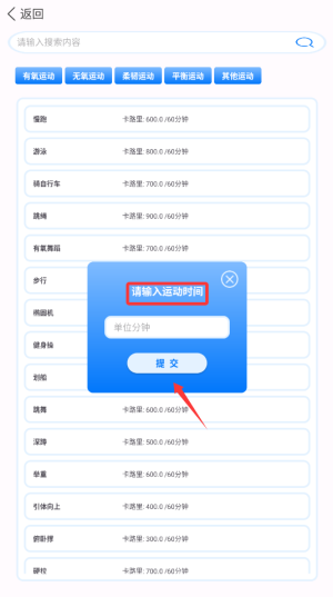 2、在"运动记录"选择当前活动类型,系统实时显示热量消耗动态。