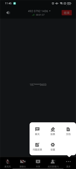2、如果你需要担任会议主持人并开启会议,点击“快速会议”就能开始邀请成员,同时可使用共享、投票、文档等功能。