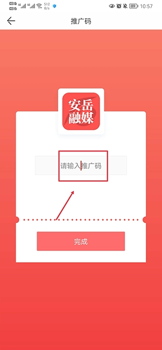 2、接着在“请输入推广码”的输入框中,填写你单位对应的推广码,之后点击完成按钮。